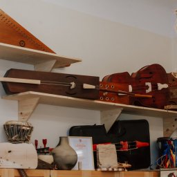 Drabešu muižas Amatu mājā vada koka apstrādes un mūzikas instrumentu gatavošanas darbnīcu.